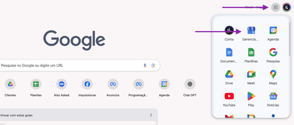 - Clicando nele vai aparecer diversos ícones e você vai procurar este da casinha azul ou basta clicar aqui https://business.google.com/locations e logue com seu e-mail cadastrado